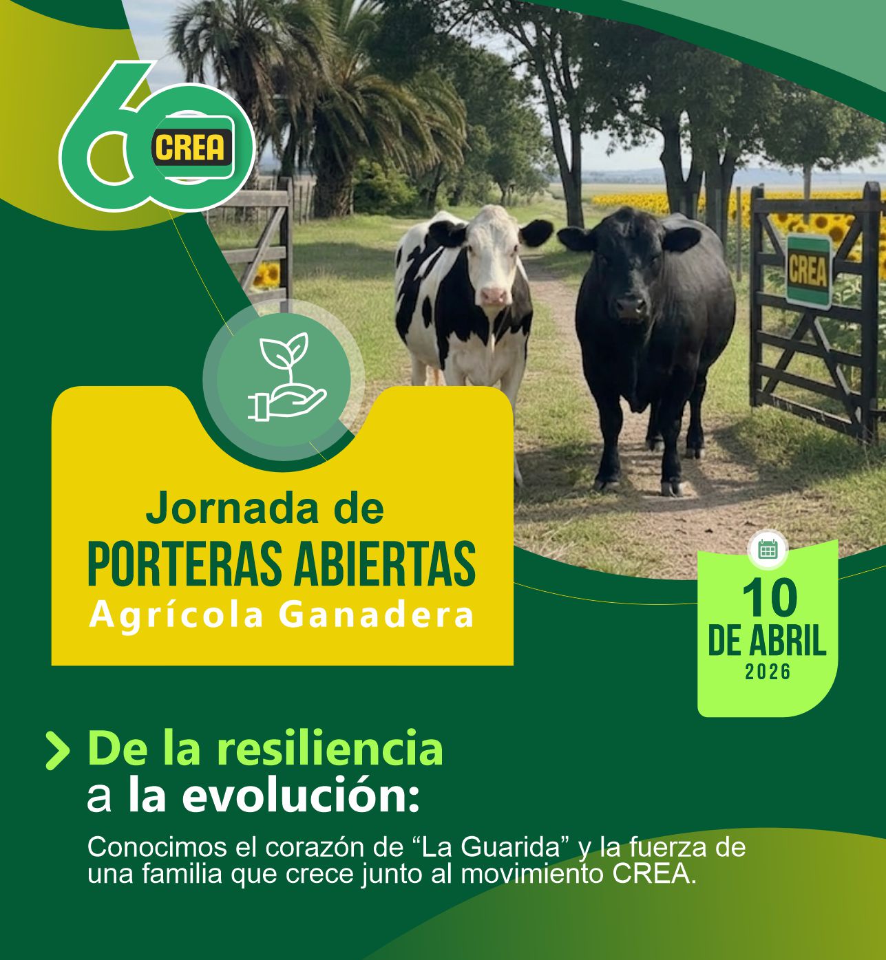 En un clima de celebración y profundo intercambio técnico, el pasado 10 de abril se llevó a cabo la primera Jornada de Porteras Abiertas Agrícola Ganadera en el marco del 60° aniversario de FUCREA. El escenario no pudo ser mejor: el establecimiento "La Guarida", de la familia Toneguzzo Besozzi (CREA Cololó), recibió a más de 300 productores, técnicos y amigos del movimiento en una tarde que quedará marcada en la historia de la institución.